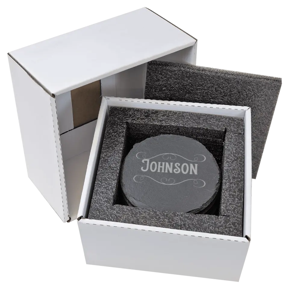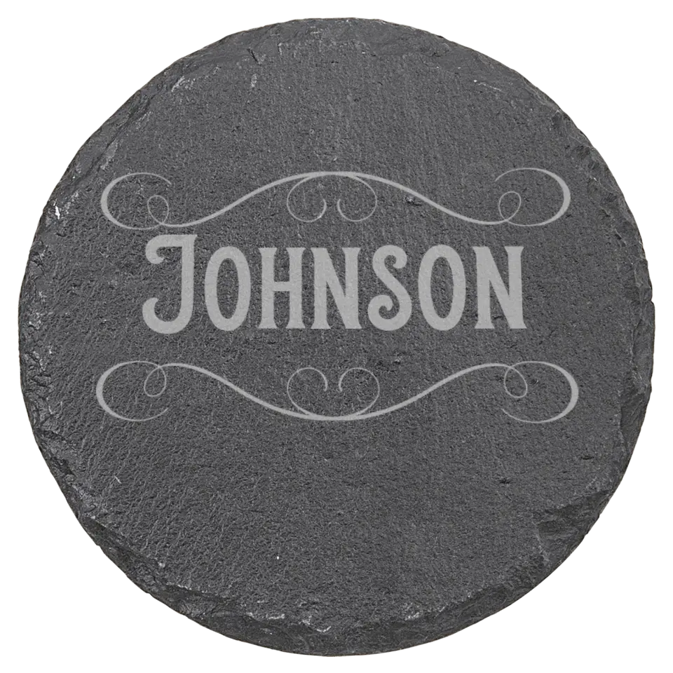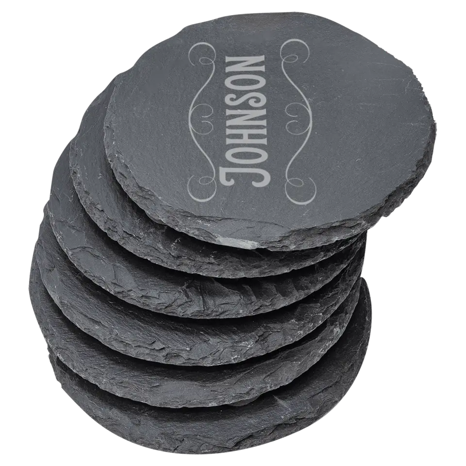 4" Round Slate Coasters 6 Piece Set - Classic Name