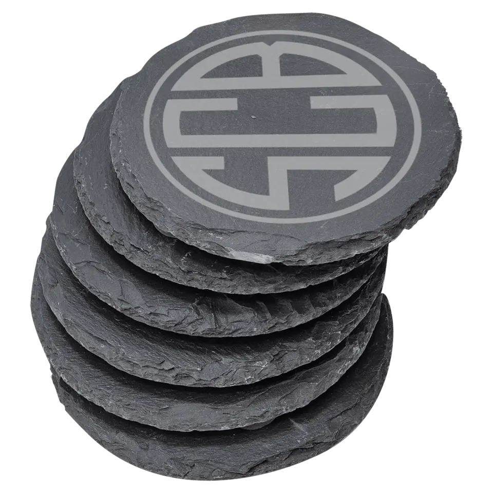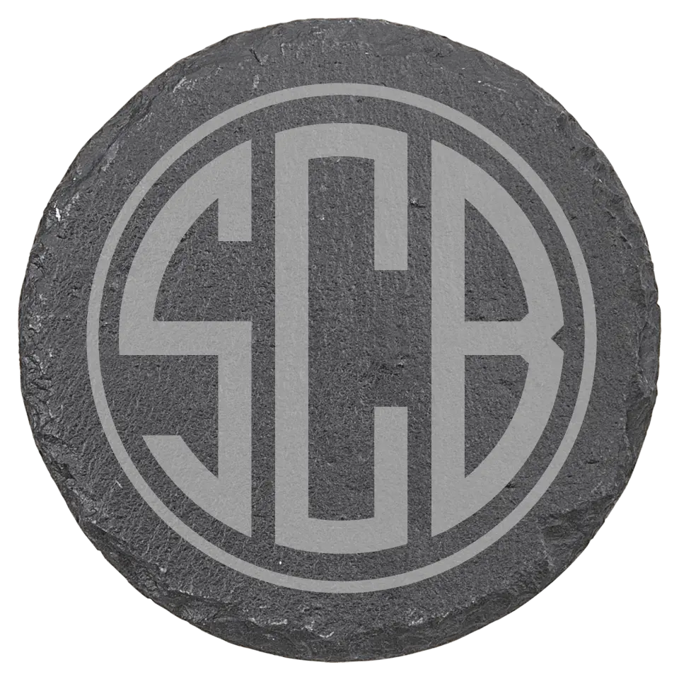 4" Round Slate Coasters - Round 3 Letter Monogram