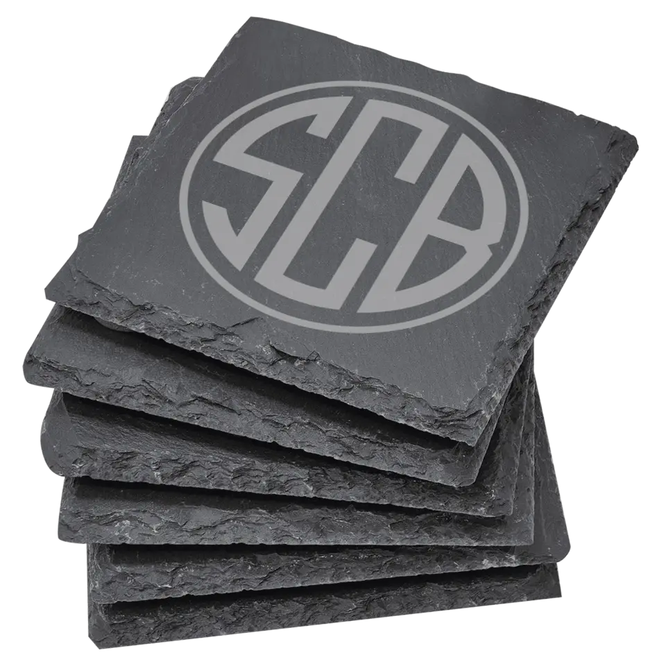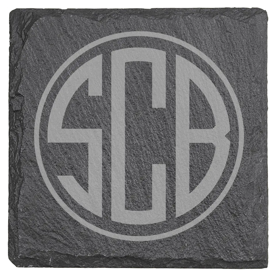 4" Square Slate Coasters - Round 3 Letter Monogram